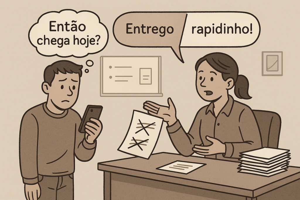 Uma das causas mais frequentes é a falta de clareza na mensagem. Isso ocorre quando o microempreendedor utiliza termos genéricos, como “em breve”, “depois” ou “logo”, sem definir datas ou prazos concretos. Esses termos podem parecer inofensivos, mas abrem margem para interpretações diferentes o que, muitas vezes, resulta em frustração por parte do cliente.